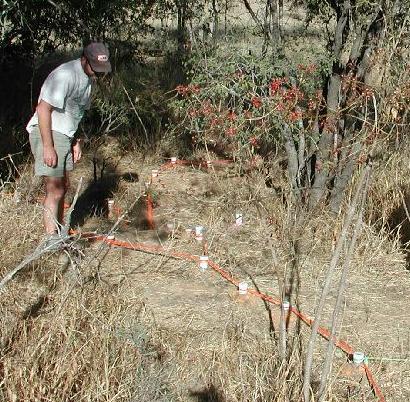 Gary at a mapped-out wombat burrow